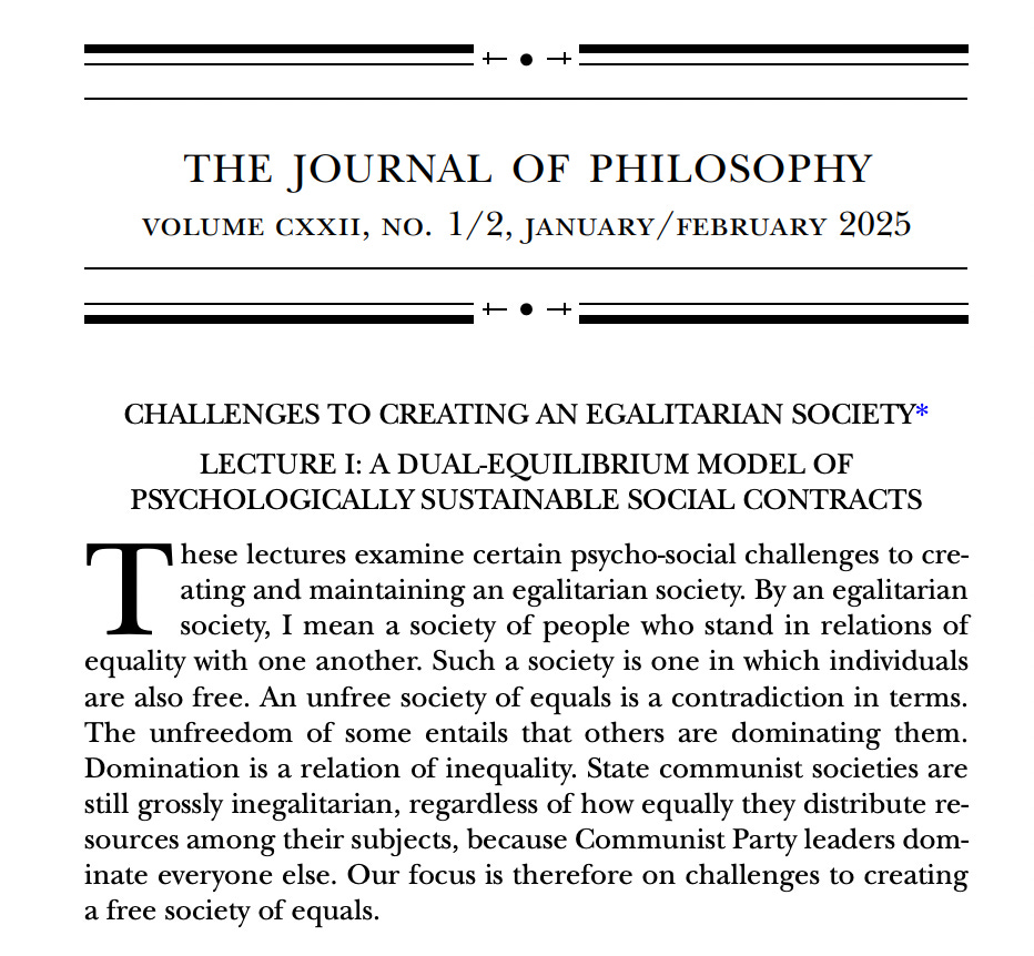 A Dual-Equilibrium Model of Psychologically Sustainable Social Contract, Elizabeth Anderson