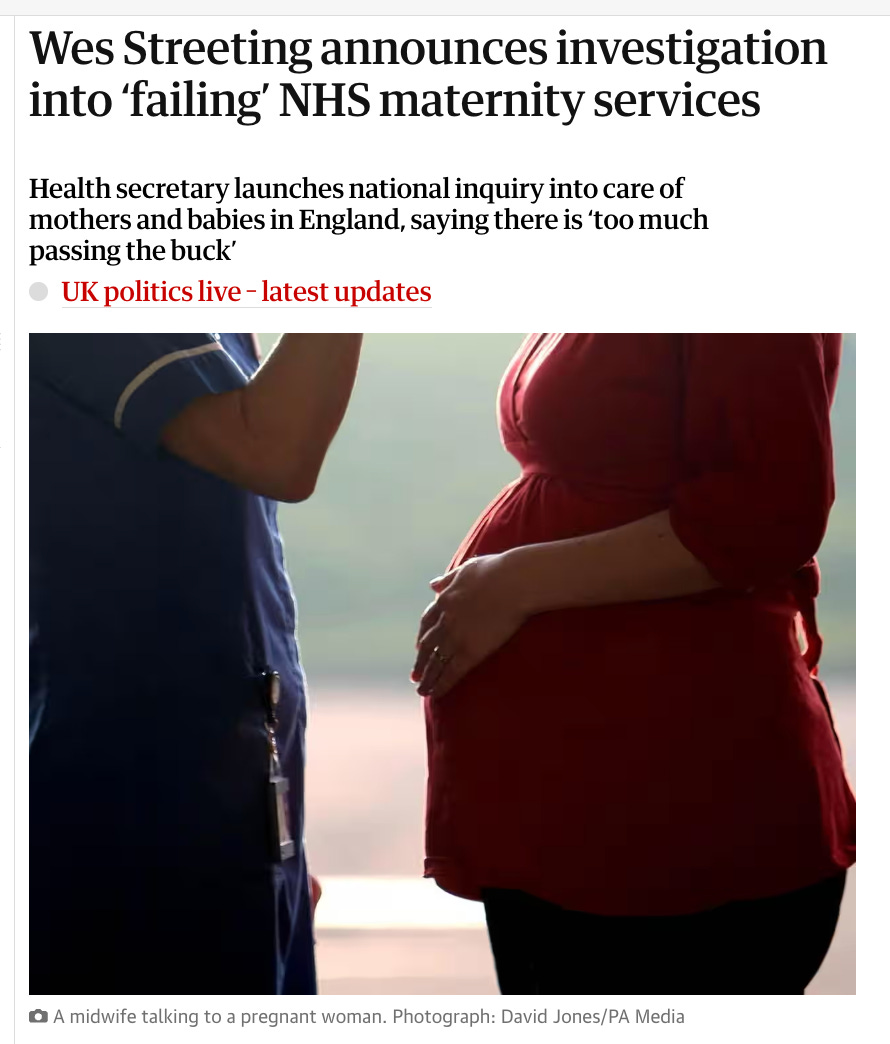 4) As this Guardian article reports, a “national investigation” was finally launched last week into the UK’s catastrophic maternity-service failures. As I wrote a few months ago: