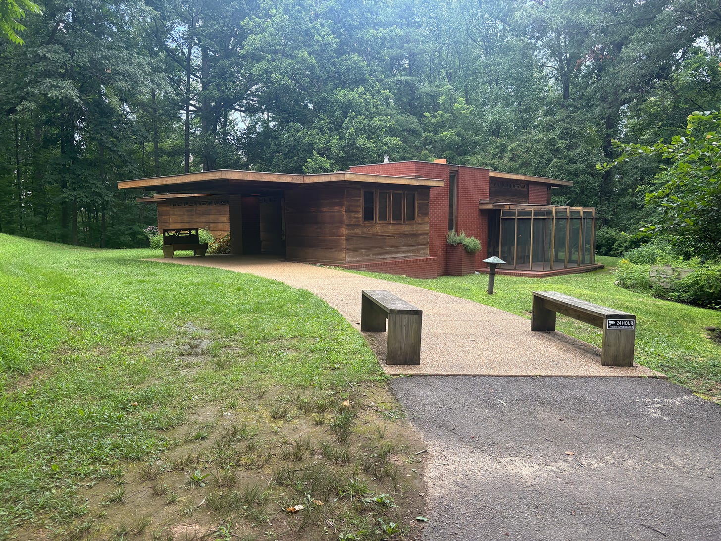 5) On Saturday, I went to see Pope-Leighey, an excellent Frank Lloyd Wright house, which stands in the grounds of Woodlawn, an excellent Georgian house built for George Washington’s step-granddaughter. I liked many things about Pope-Leighey, visually. But I particularly enjoyed learning that it has been moved twice, red brick by red brick, perfectly-aligned screw by perfectly-aligned screw. The first time, it was moved to the Woodlawn grounds, from Falls Church, 20 miles away. The second time, it was moved to its current position, from about 30 feet away. Are these moves enough to make it the House of Theseus?