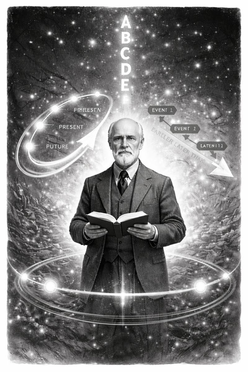 1) On Tuesday, I published a piece about how Solvej Balle interacts with the philosophy of time in her On the Calculation of Volume novels. While writing my Balle piece, I reread two of my favourite philosophy of time papers, both classics. The first of these is J.M.E. McTaggart’s The Unreality of Time (1908). As I discussed in my Balle piece, it’s in this paper that McTaggart introduces his influential ‘A series and B series’ framing: