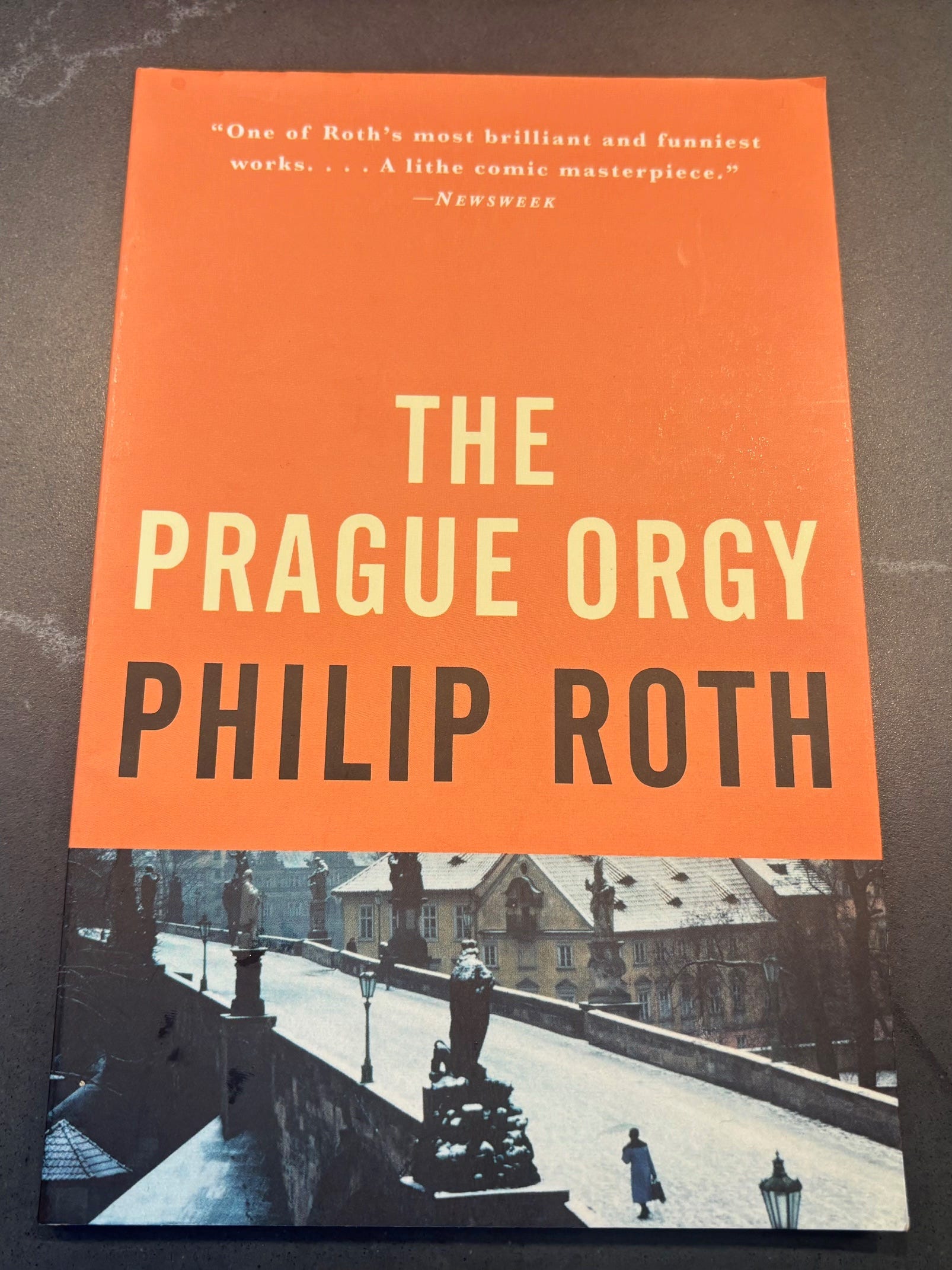 3) The Prague Orgy (1985) is a novella by Philip Roth about an American novelist’s trip to Soviet Czechoslovakia. It’s funny and deep, as well as shocking in parts. But I just finished reading it, and want to think about it some more. For now, therefore, I’ll simply give you a few lines that particularly struck me: