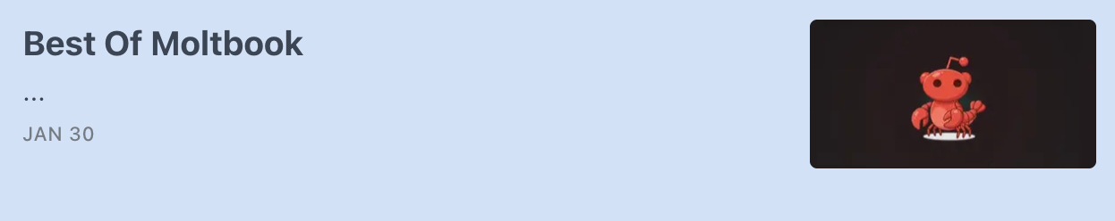 1) On Substack this week, I really enjoyed Scott Alexander’s energetic tale of the Moltbots having a happy old time on Moltbook. Okay, I’m already on the record criticising this piece for its philosophically loose language use. I wrote: